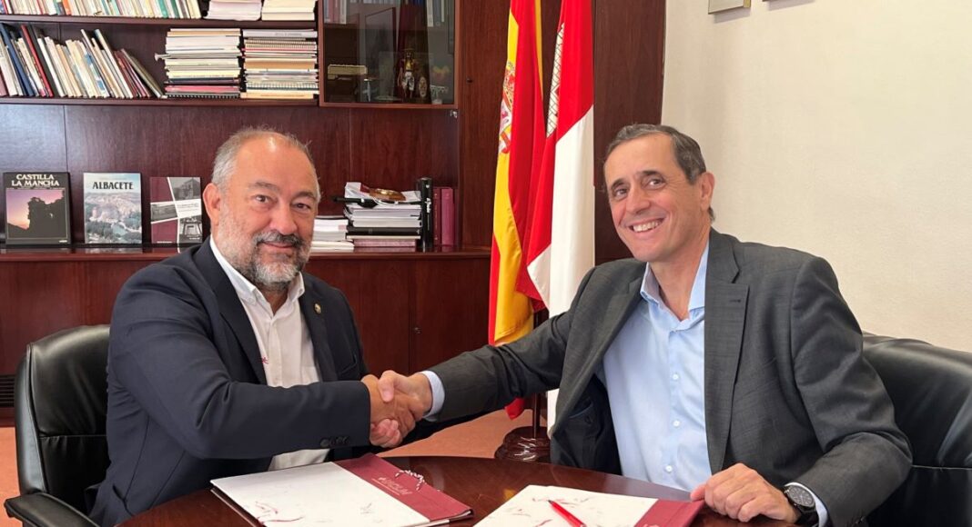 El rector de la Universidad de Castilla-La Mancha (UCLM), Julián Garde, y el consejero delegado de Airbus Helicopters España SA, Fernando Lombo, han firmado una adenda al convenio suscrito entre ambas partes por la que se prorroga el trabajo de colaboración entre dichas entidades dentro del Aula Airbus-UCLM.