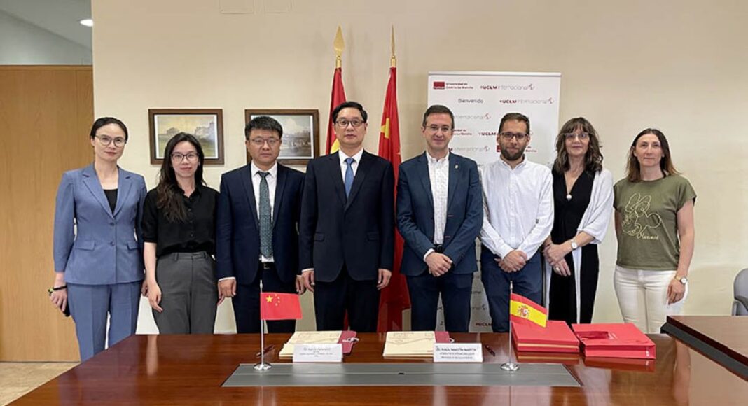 La Universidad de Castilla-La Mancha (UCLM) y el Colegio Universitario de Tecnología de Huzhou (China) han firmado un convenio marco para regular las relaciones académicas internacionales en materia de investigación y docencia. Para abordar esta colaboración, el rector de la institución china, Xiao Xianbo, acompañado por varios miembros de su equipo, ha mantenido un encuentro con el vicerrector de Internacionalización, Raúl Martín, en el Campus de Toledo.