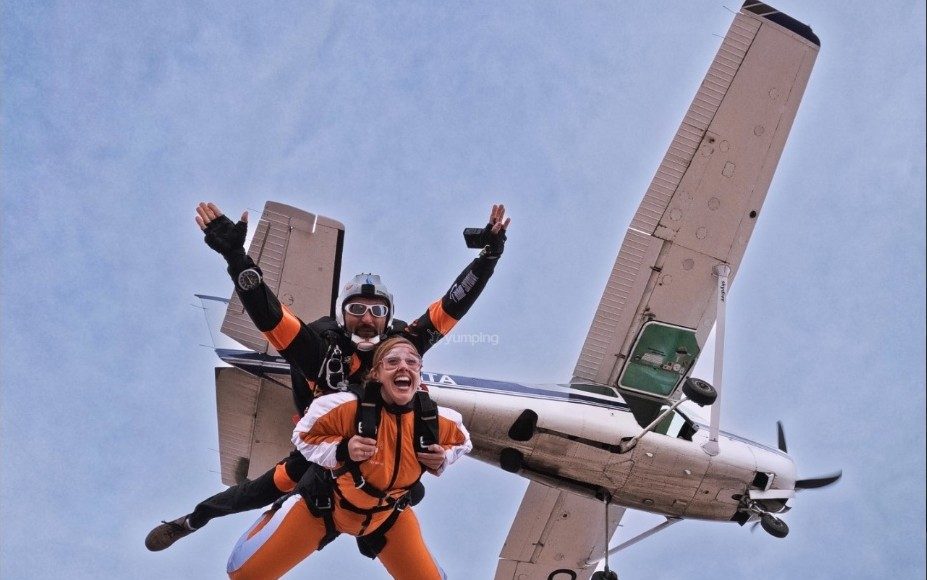 La actividad incluye una explicación previa, el equipamiento completo —como gafas y material de seguridad— y un vuelo de unos 15 minutos hasta alcanzar la altitud necesaria. Desde allí, el participante se lanza para vivir alrededor de 60 segundos de caída libre antes de abrir el paracaídas y continuar planeando durante varios minutos.