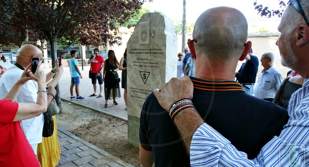 Con un sencillo y emotivo acto celebrado el sábado en el parque de la Constitución de Tomelloso, se descubrió un monolito en memoria de los tres castellano-manchegos (de origen tomellosero) Fernando Ugena López, Valentín Espinosa Giménez y Abdón Alonso Casas, deportados a los campos de concentración nazi. Asistieron a este acto familiares de los homenajeados y representantes de los cinco grupos municipales del Ayuntamiento. Cabe recordar que el acto responde a una iniciativa presentada por IU al Pleno de la Corporación que fue apoyada por todos los grupos municipales.