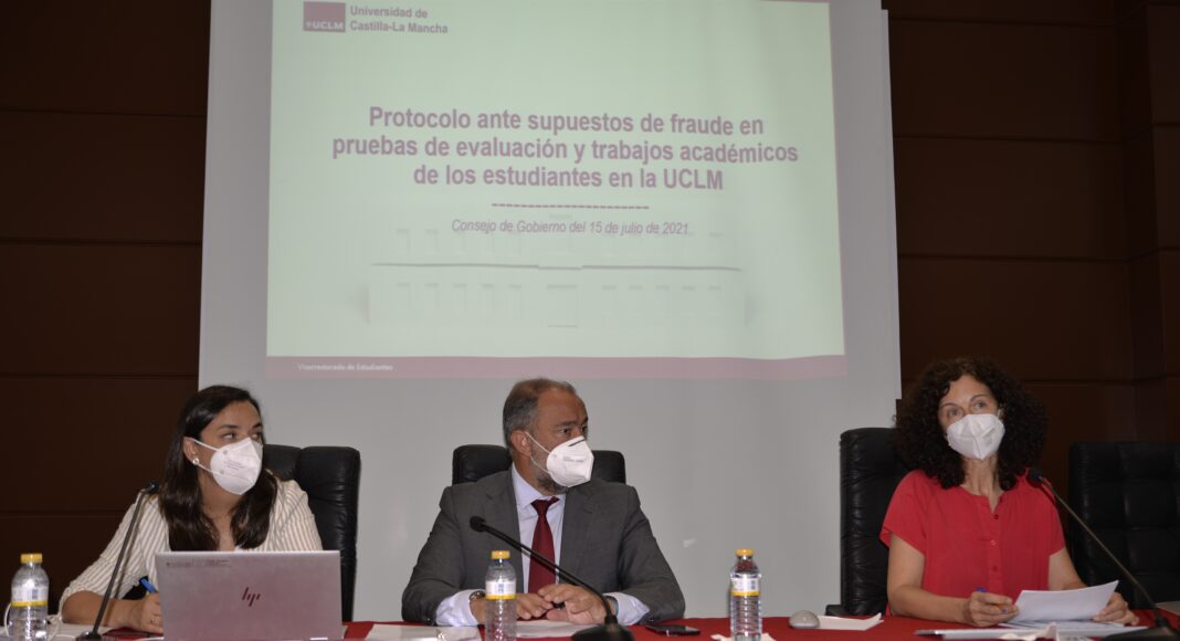 El Consejo de Gobierno de la Universidad de Castilla-La Mancha (UCLM), celebrado en modalidad híbrida y sincrónica bajo la presidencia del rector, Julián Garde, en el Campus de Ciudad Real, ha aprobado un protocolo ante supuestos de fraude en pruebas de evaluación y trabajos académicos de los estudiantes de la institución académica, que entrará en vigor en el curso 2021-2022.