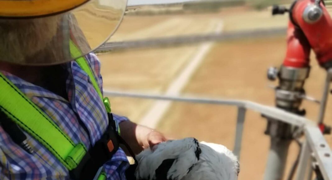 Al lugar, donde hay bastantes nidos en las torretas y las chimeneas, se desplegó un dispositivo compuesto por un vehículo contra incendios y un brazo articulado por el que ascendió un bombero y personal de El Chaparrillo para salvar al polluelo, que fue puesto en libertad tras un estudio in situ mediante el que se comprobó que estaba en perfecto estado.