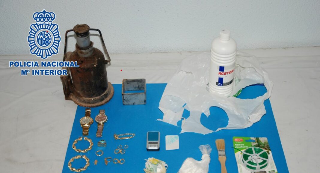 Tras practicar la detención de ambas personas, se procedió al registro de la vivienda que servía de almacén, donde se incautó otra roca de cocaína de 68 gramos de peso, así como sustancias para el corte, una báscula de precisión para el pesado de la droga, bolsas de plástico para la confección de las dosis y una gran cantidad de joyas.