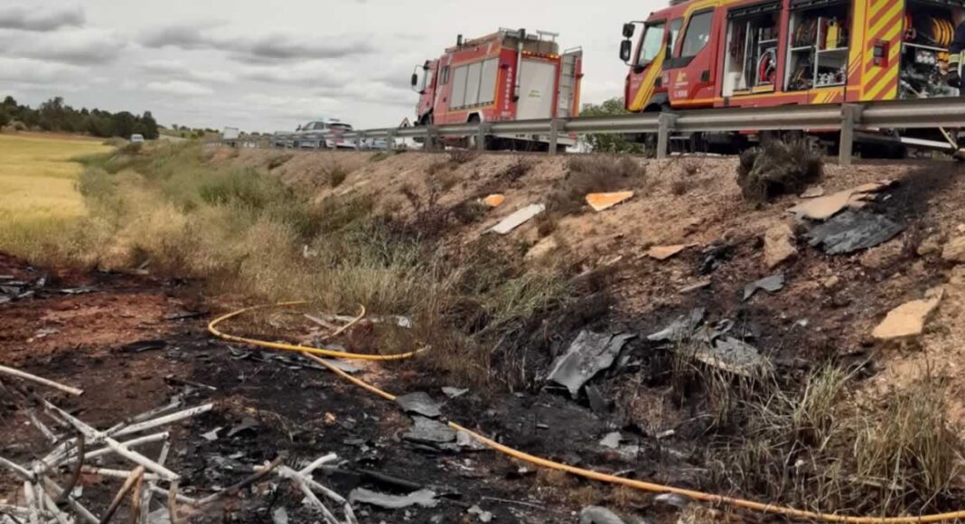 Una persona ha fallecido este domingo en un accidente de avioneta que ha tenido lugar en Alcázar de San Juan. El aparato se ha precipitado y ha salido ardiendo tras chocar contra el suelo.