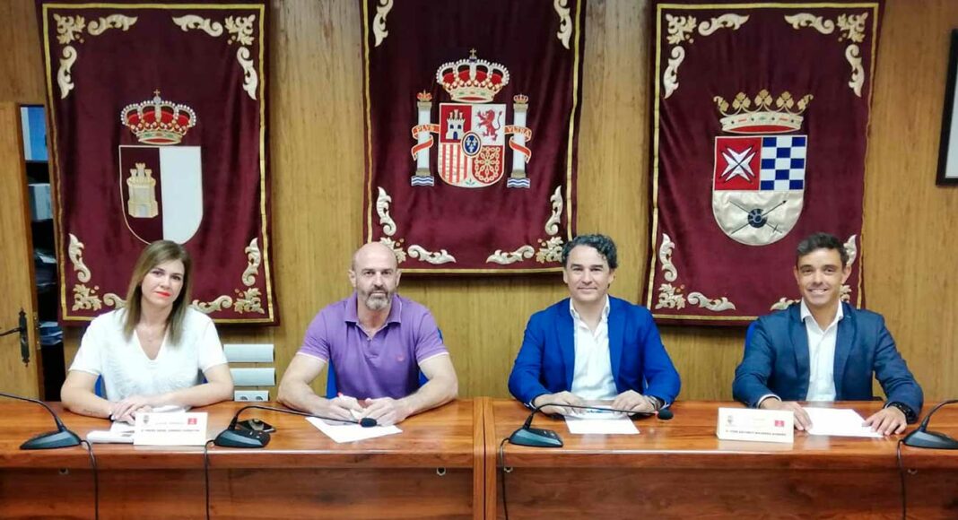 El alcalde de Argamasilla de Alba, Pedro Ángel Jiménez, acompañado de la concejala de Servicios Sociales y Tercera Edad, Cristina Carretón, y los representantes de la empresa Ingesan-Comunitelia, que gestiona parte de los servicios de la Residencia de Mayores “Virgen de Peñarroya”, han rubricado un contrato para la prestación del servicio de transporte adaptado para los y las usuarias del Centro de Día de Mayores, mientras se recibe el nuevo vehículo de transporte adquirido por el Ayuntamiento, tras incendiarse el motor de la furgoneta con la que contaba el centro.