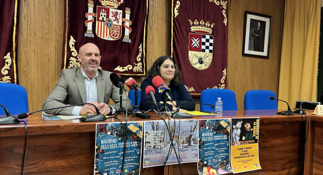 El alcalde de Argamasilla de Alba, Pedro Ángel Jiménez, y la concejala de Festejos, Alba Hilario, han presentado este lunes en el Ayuntamiento el programa festivo y cultural para estas fiestas navideñas con el que “se recupera una Navidad con todas sus actividades”, afirmaba la concejala.