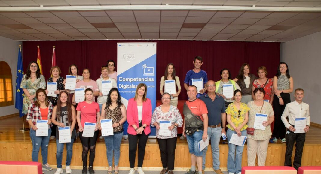 La concejala de Servicios Sociales del Ayuntamiento de Argamasilla de Alba, Cristina Carretón, ha entregado este jueves, en el salón de actos del Centro Social Polivalente, los diplomas de participación y aprovechamiento a un grupo de 23 alumnos, 19 mujeres y 4 hombres, que completaron con éxito dos acciones formativas en Competencias Digitales para Crecer.