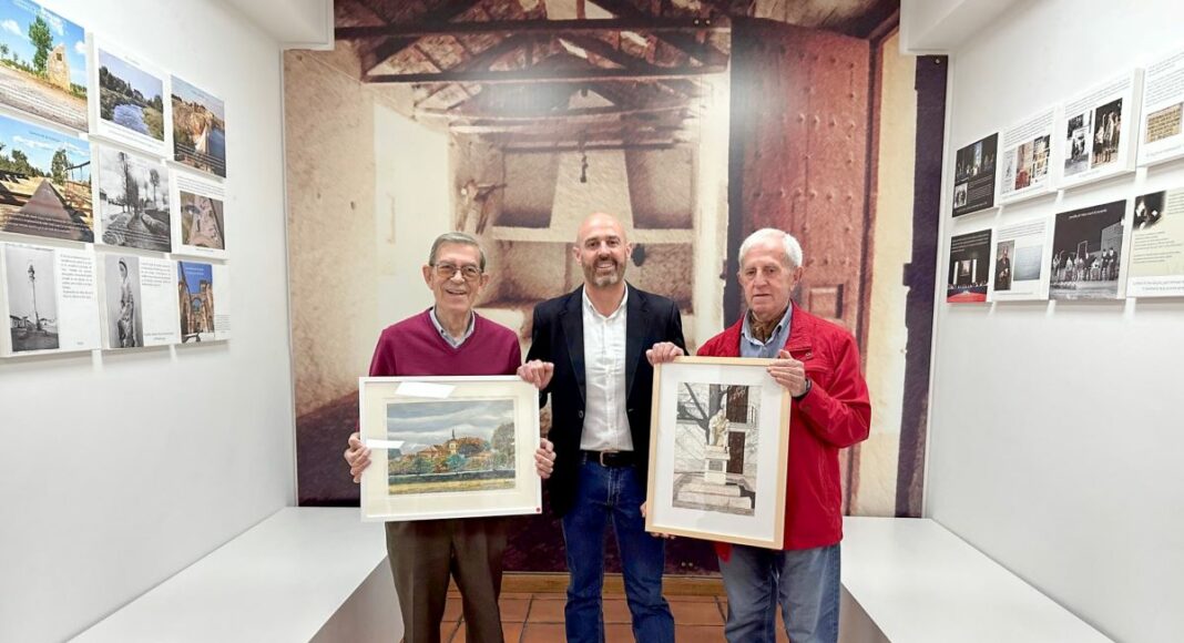 El alcalde de Argamasilla de Alba recibe dos acuarelas de manos de sus autores, José Luis Martín y Martín Pérez