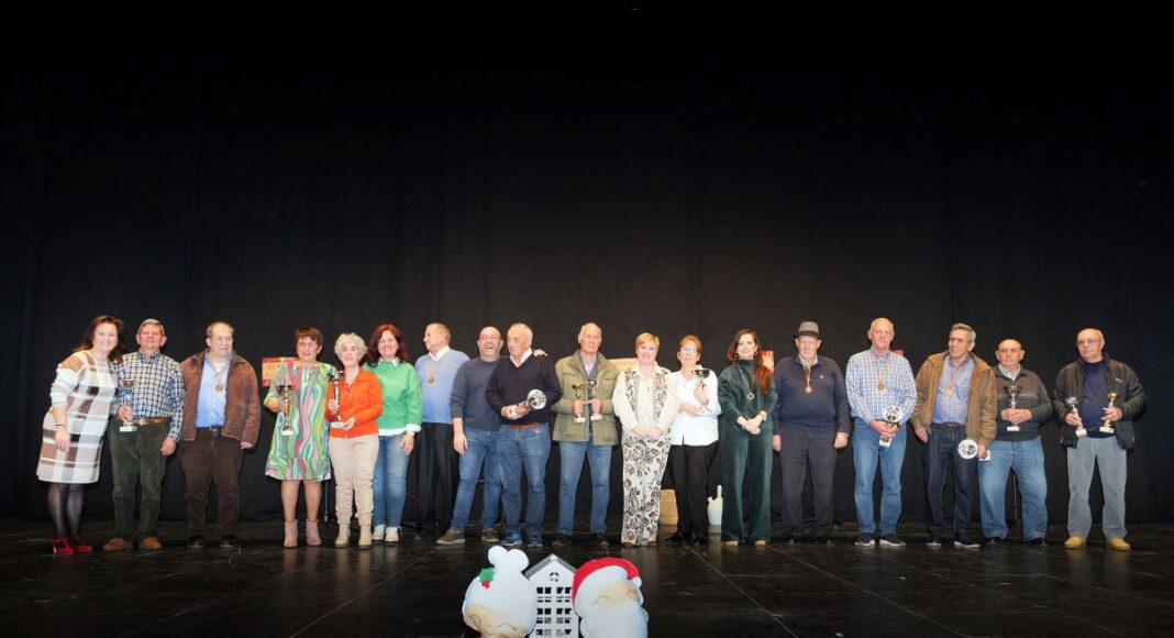 Antes de dar por concluido el espectáculo, la alcaldesa junto a la concejala de Bienestar Social y los portavoces de los grupos políticos municipales del PSOE e IU, Noelia Serrano y Francisco Jesús Olmedo, respectivamente, entregaron los trofeos correspondientes a los torneos de billar, petanca y juegos de mesa celebrados previamente a la llegada de estas fiestas.
