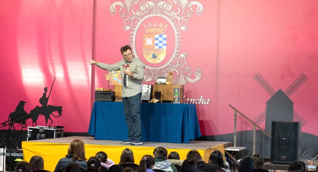 La Concejalía de Cultura, a través de la Biblioteca Municipal Cervantes, ha organizado un encuentro único y original con el narrador Oswaldo Pai, que ha tenido lugar este martes 30 en la Carpa del Auditorio de Verano. Bajo el título «Artilogios, un elogio al artilugio de un juglar particular», Pai ha presentado un espectáculo que ha cautivado al público. Esta actividad es la última de las programadas dentro del programa “Abril, mes de las letras” por la Concejalía de Cultura para este mes de abril, culturalmente muy importante para Argamasilla de Alba.