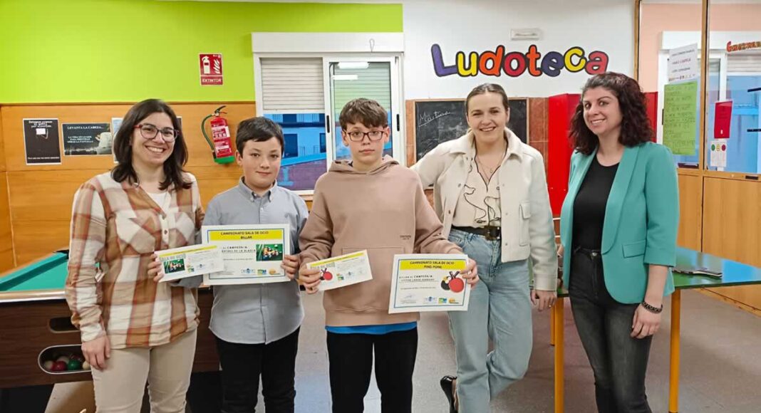 El pasado fin de semana, se entregaron en la Sala de Ocio Juvenil de Argamasilla de Alba los premios a los ganadores de los torneos de billar y ping-pong. Raúl Sánchez de la Blanca y Víctor Lahoz Serrano, respectivamente, fueron los afortunados que se llevaron a casa un diploma y un vale de regalo de 30€ para gastar en tiendas de deporte y papelerías de la localidad. Los premios fueron entregados por Clara Hilario, concejala de Juventud; Silvia Carrasco, coordinadora del centro Infantojuvenil, y Yolanda Valverde, monitora de la sala de ocio.