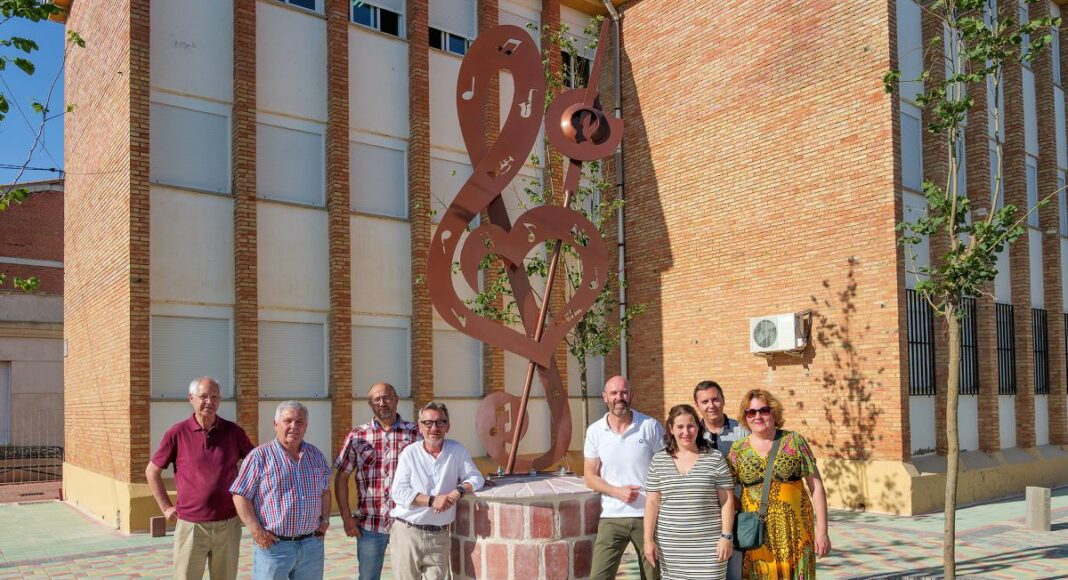 El alcalde en funciones, Pedro Ángel Jiménez, junto con la presidenta de la Agrupación Musical «Maestro Martín Díaz», Elisa Serrano; el director de la banda de la agrupación y de la Escuela Municipal de Música, Miguel Carlos Gómez, junto con miembros de la directiva de la agrupación, han visitado las obras que se están llevando a cabo en el recinto de la Universidad Popular «Pascual Antonio Beño Galiana», donde se ha situado una escultura conmemorativa del 30 aniversario de la Maestro Martín Díaz.