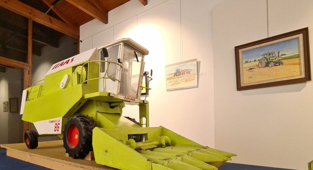 Cuarenta años tiene la primera de las obras y apenas un mes la última, entre ellas pueden verse desde tractores con ruedas de hierro y a vapor hasta los últimos modelos que se mueven por los cultivos con GPS. Aunque Sindo no ha pretendido hacer un recorrido sobre la historia del tractor, podría decirse que prácticamente lo es.
