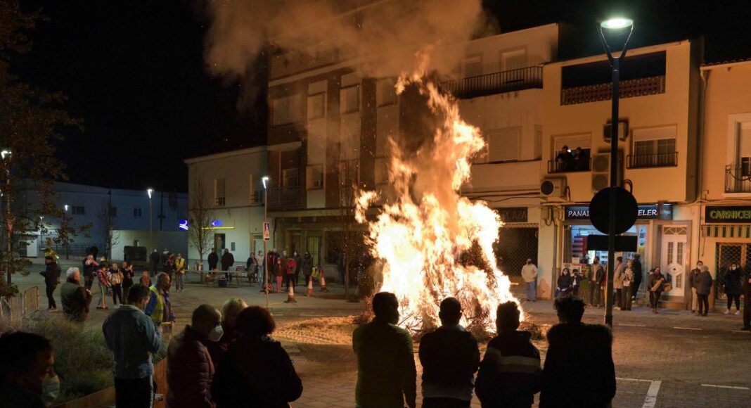 A las 20:00 h. el alcalde, Pedro Ángel Jiménez, y la concejala de Festejos, Alba Hilario, iniciaban una cuenta atrás para el encendido de la hoguera municipal, situada frente a la ermita de San Antón.