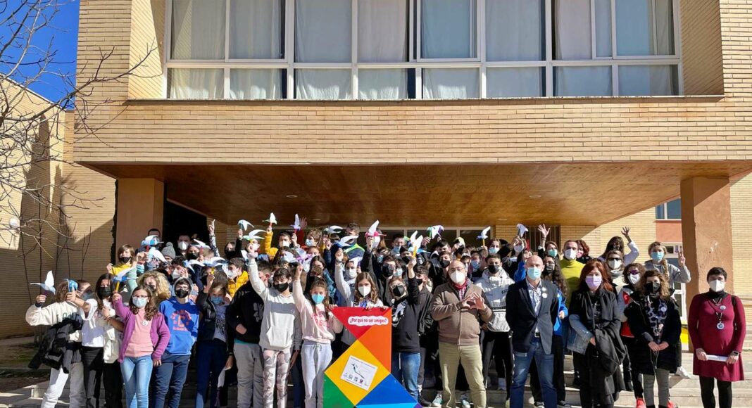 Así mismo, todos los alumnos y alumnas han sido obsequiados con una chapa que lleva impresa la “banda sonora” elegida para este día y la “pajarita de la diversidad y del respeto”, elegida como símbolo del Día Escolar de la No Violencia y la Paz 2022. Además, durante estos días, en el balcón del Ayuntamiento, están colgadas las pajaritas de gran tamaño realizadas por los cinco centros educativos de la localidad.