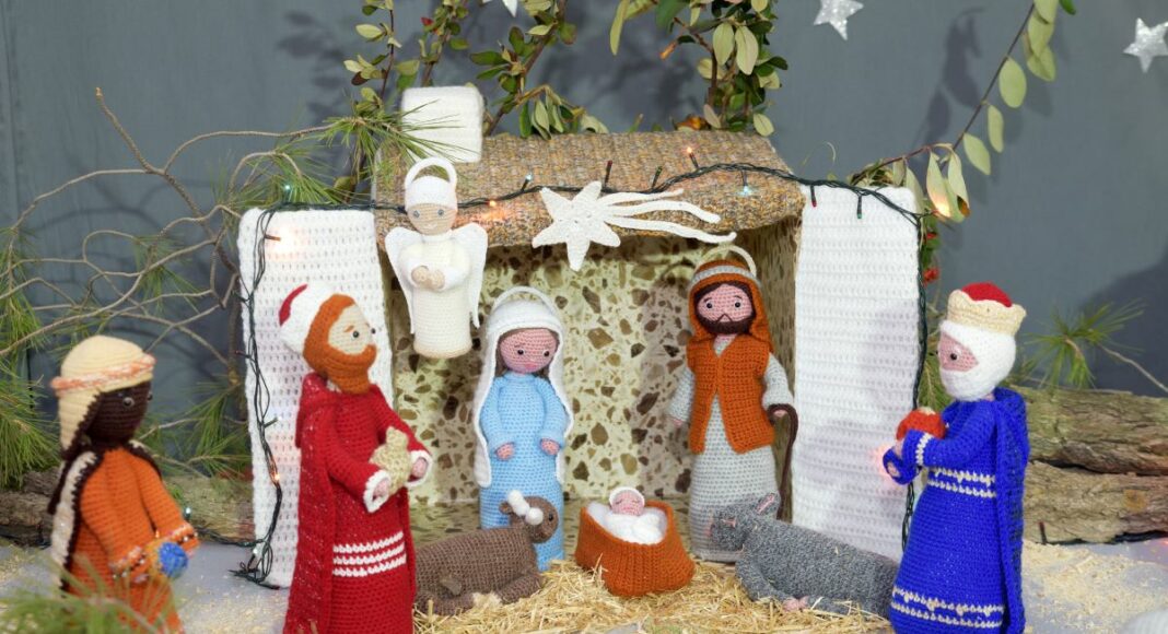 La Asociación de Amas de Casa de Argamasilla de Alba ha instalado en el local situado en la calle General Aguilera nº 16 (antigua Cafetería 2000) un original belén realizado íntegramente con la técnica de tejer denominada ganchillo.