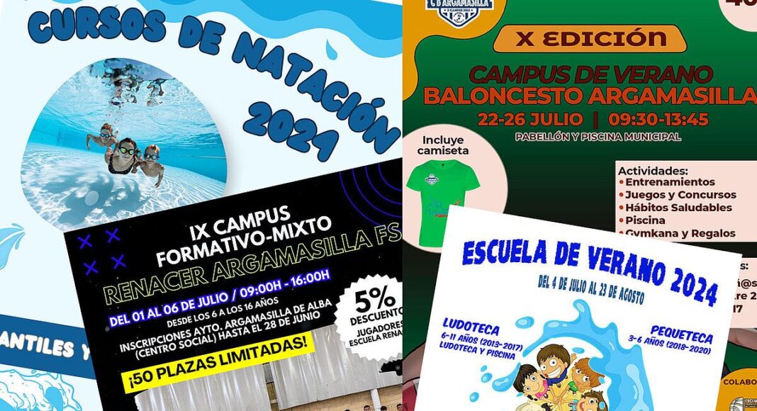 Y, por último, el Campus de Verano Baloncesto Argamasilla vuelve con más fuerza que nunca. Del 22 al 26 de Julio de 2024, niños y niñas nacidos entre 2008 y 2017 podrán disfrutar de este campus de baloncesto en el Pabellón y Piscina Municipal. No te pierdas esta oportunidad de disfrutar del baloncesto y la diversión en verano Las plazas son limitadas, así que no tardes en inscribirte hasta el 22 de junio.