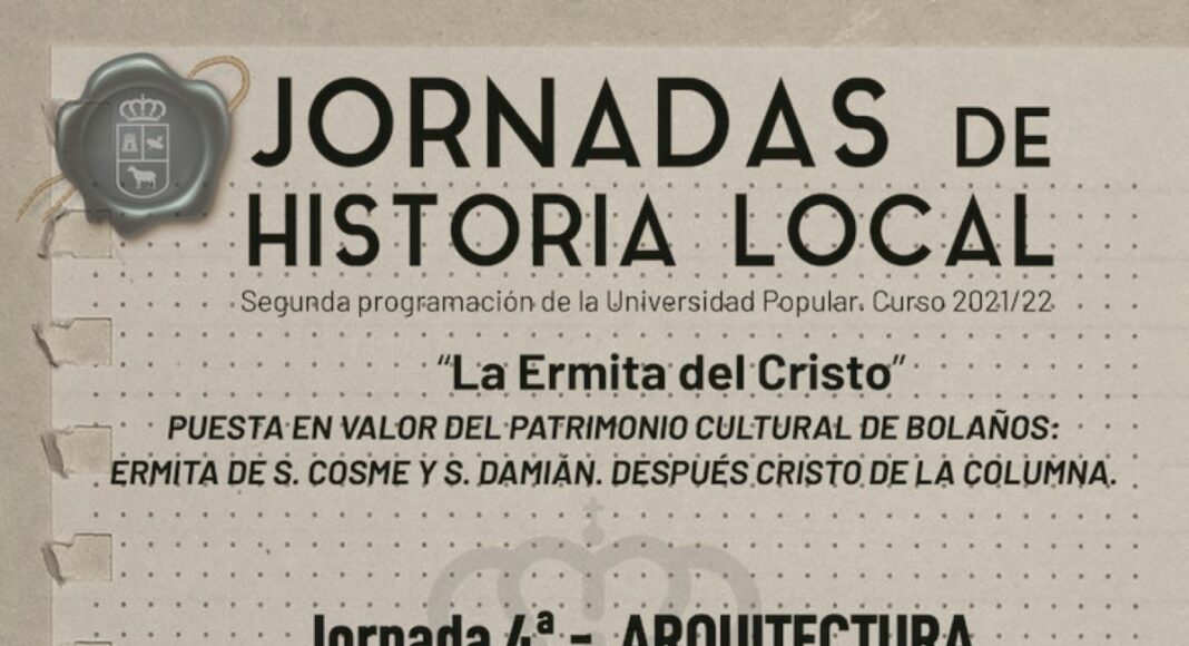 Una vez conocida la historia y los secretos que esconden las pinturas de la ermita del Cristo de la Columna, la conferencia de este jueves de las Jornadas de Historia local en torno a la misma, organizadas por el Ayuntamiento de Bolaños y coordinadas por el Archivo Municipal y la Universidad Popular, se centrará en la dimensión Arquitectónica de la antigua ermita de San Cosme y San Damián. Como es habitual, la cita tendrá lugar a las 20:00 horas en el lugar de culto.