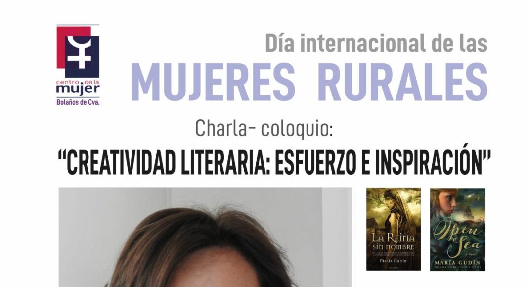 Siguiendo con la programación en torno al 15 de octubre, Día Internacional de las Mujeres Rurales, mañana por la tarde, a las 18:00 horas, la sala de exposiciones de la Casa de Cultura recibirá a la escritora de novela histórica, María Gudín, quien impartirá la charla-coloquio ‘Creatividad literaria: esfuerzo e inspiración’, organizada conjuntamente entre la Biblioteca Municipal y el Centro de la Mujer de Bolaños.