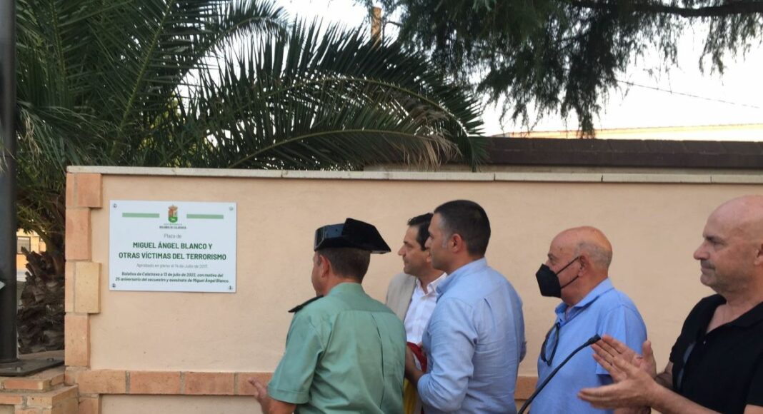 Miguel Ángel Blanco y Otras Víctimas del Terrorismo ya tienen una placa conmemorativa en Bolaños de Calatrava, en la Plaza ubicada en la urbanización Castilla-La Mancha, y que desde 2017 lleva el nombre del edil asesinado a manos de ETA hace 25 años y otras víctimas del terrorismo. La placa con el nombre de estos se destapó en la tarde del miércoles en el acto homenaje organizado por el Excmo. Ayuntamiento de Bolaños, al que acudieron la Corporación Municipal, encabezada por el Alcalde, Miguel Ángel Valverde; el Delegado Territorial de la Asociación de Victimas del Terrorismo de Castilla- La Mancha, Jesús Faucha; el Guardia Civil Víctima del Terrorismo, Cándido Blanco Aranda; y representantes de asociaciones locales, Guardia Civil y Policía Local de Bolaños, así como otras víctimas de terrorismo y vecinos.