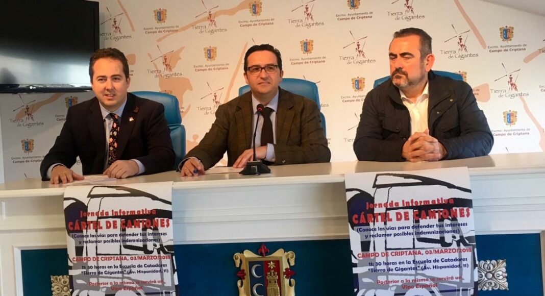Unas jornadas que han sido presentadas en rueda de prensa por el alcalde criptanense, Antonio Lucas-Torres, como administración colaboradora del evento, y por Gonzaga Huertas, como miembro de las asociaiones de transportes de la región. En esta línea, explicaba que las jornadas, que son gratuitas y que están abiertas a todos los transportistas del municipio y la comarca, contarán con la participación del bufete de abogados encargado de llevar a cabo la defensa de los afectados. Una situación que en el caso de Campo de Criptana afecta a un total de 428 camiones, tal y como explicaba Lucas-Torres, quien además ha destacado que las indemnizaciones para los transportistas criptanenses pueden alcanzar los cinco millones y medio de euors, lo que supone hasta diez mil euros por camión afectado, según el tipo de contrato de compra.