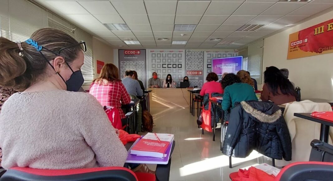 Delegados sindicales de CCOO han participado este jueves en Ciudad Real en un taller formativo sobre protocolos frente al acoso sexual y por razón de sexo en los centros de trabajo. Todas las empresas, independientemente del número de trabajadores y de trabajadoras, han de tener estos protocolos, pero la realidad es que la mayoría de las empresas no lo tienen.