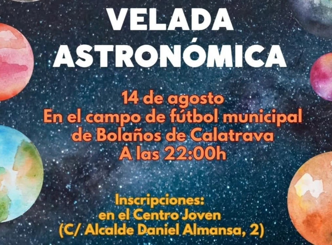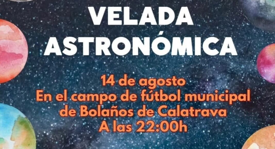 El Ayuntamiento de Bolaños de Calatrava ha organizado una velada astronómica que tendrá lugar el próximo miércoles 14 de agosto a las 22.00 horas en el Campo de Fútbol Municipal.