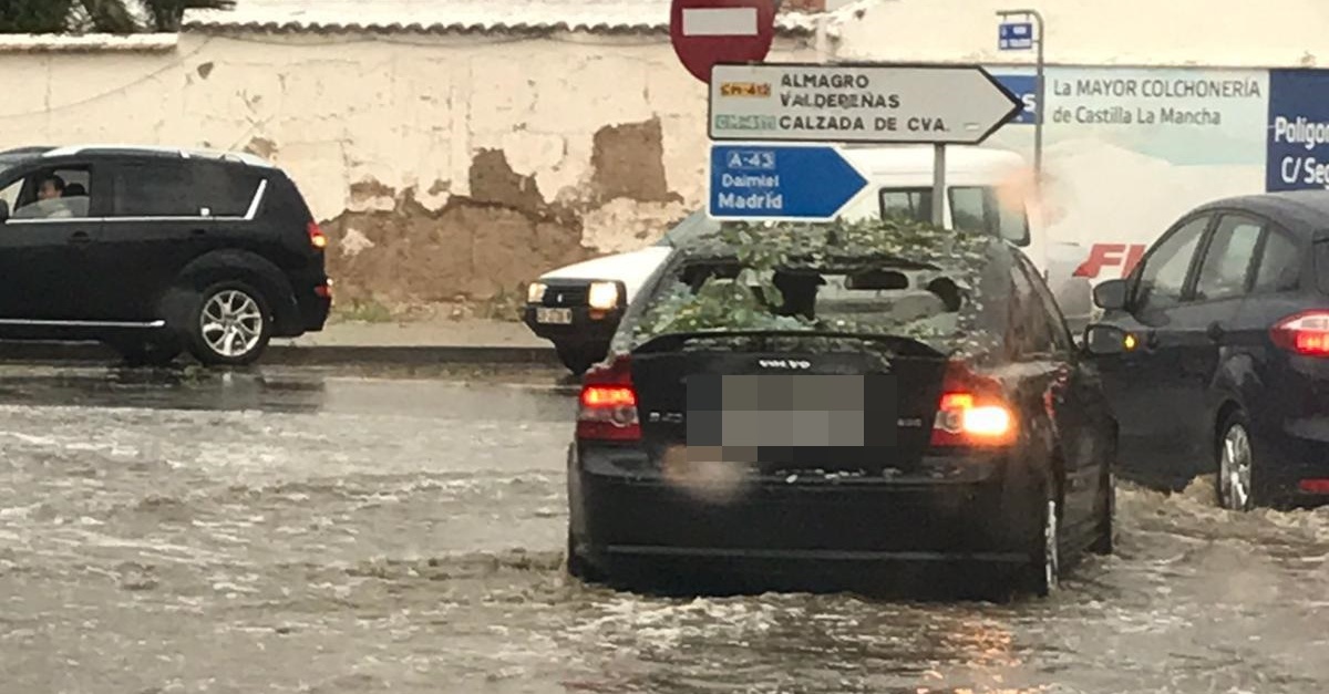 Una gran tormenta de granizo ha pasado sembrando el pánico en Ciudad Real capital al caer en pocos minutos piedras de granizo del tamaño de una pelota de golf, que han ocasionado importantes daños en coches y viviendas.