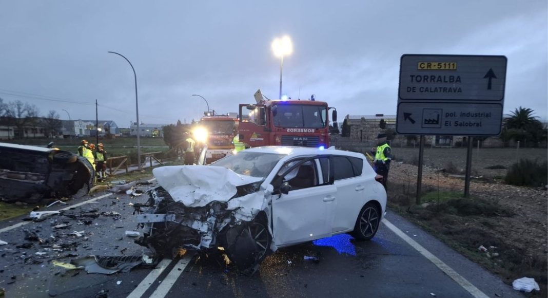 Un accidente de tráfico registrado a primera hora de la mañana en la carretera CR-5111, que conecta las localidades de Bolaños y Torralba, se ha saldado con dos personas atrapadas tras una colisión frontal entre dos turismos.
