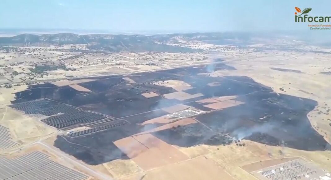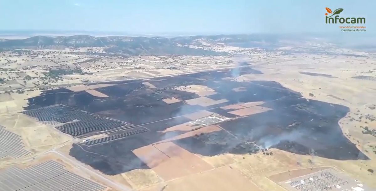 El incendio originado este lunes en la localidad ciudadrealeña de Brazatortas y que llegaba a interrumpir la circulación ferroviaria entre Puertollano y Venta de la Inés, afectando a la línea de alta velocidad entre Madrid y Andalucía, ha quedado extinguido.