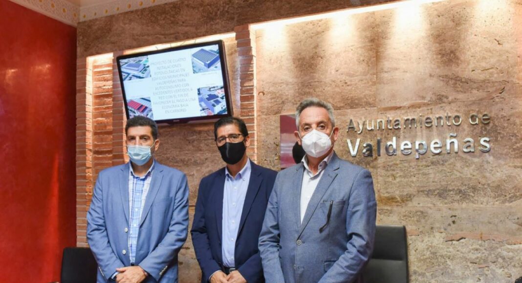 La ciudad deportiva Virgen de la Cabeza (pabellón de pelota), el complejo Ciudad de Valdepeñas (piscina de los Llanos), junto al pabellón ferial y Valcentro, espacio que en su día acogió el antiguo mercado de la villa, son las infraestructuras en las que se instalarán un millar de módulos de silicio que, con una potencia de 350 kilowatios, permitirá una reducción del 60 por ciento en el consumo. Así lo ha destacado el presidente de la institución provincial, José Manuel Caballero, quien ha comparecido acompañado por el alcalde de Valdepeñas, Jesús Martín, y por el vicepresidente responsable de Obras e Infraestructuras y teniente de alcalde, Manuel Martínez Alcorocho.