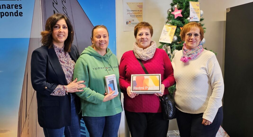 Durante la campaña de noviembre, quienes realizaron compras iguales o superiores a 20 euros en los comercios adheridos a la app ‘Compra en Manzanares’ tuvieron la oportunidad de ganar un smartphone y una tablet Xiaomi. Solo tenían que escanear con su móvil el ticket de compra y subirlo a la aplicación, donde al momento se sabía si habían conseguido algún premio. Las hermanas Luisa y Pilar Fernández-Pacheco Domínguez consiguieron la tablet el último día de la campaña. Por su parte, María Moreno Román, escaneó el ticket de la compra que hizo su marido y ganó el teléfono móvil.