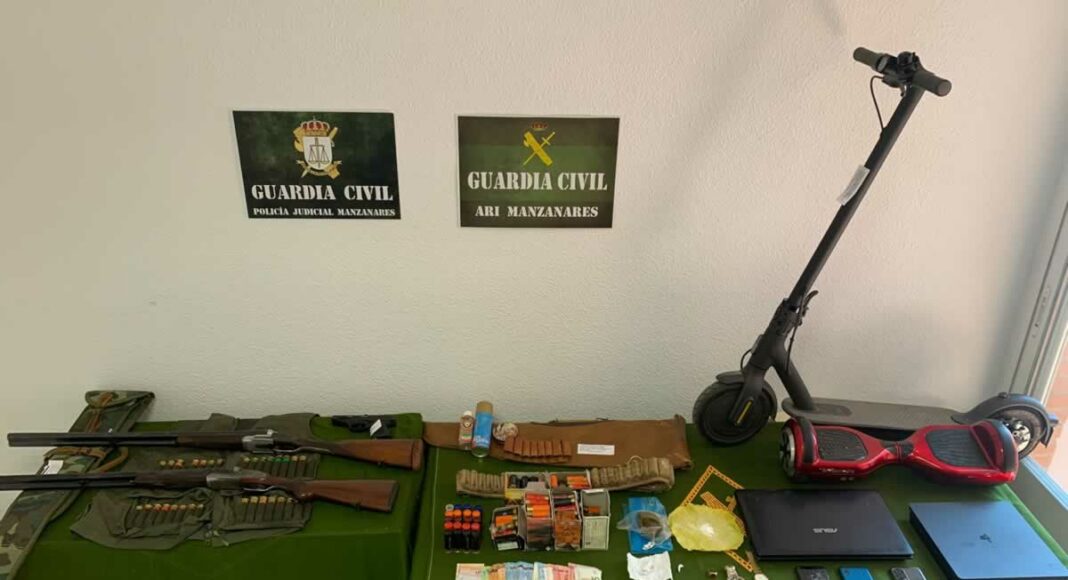 La Guardia Civil detiene a cuatro personas en Manzanares acusadas de delitos de robo con fuerza, tenencia ilícita de armas, tráfico de drogas y receptación.