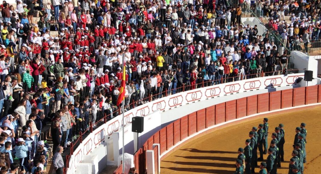 Dentro de las actividades conmemorativas realizadas en el marco del Día del Pilar, patrona de la Guardia Civil, el pasado viernes la plaza de toros acogió una exhibición de medios dirigida a la comunidad educativa. Una muestra del trabajo que realizan diferentes fuerzas de este cuerpo, como la Unidad de Seguridad Ciudadana, el Servicio Cinológico o el Equipo Pegaso.