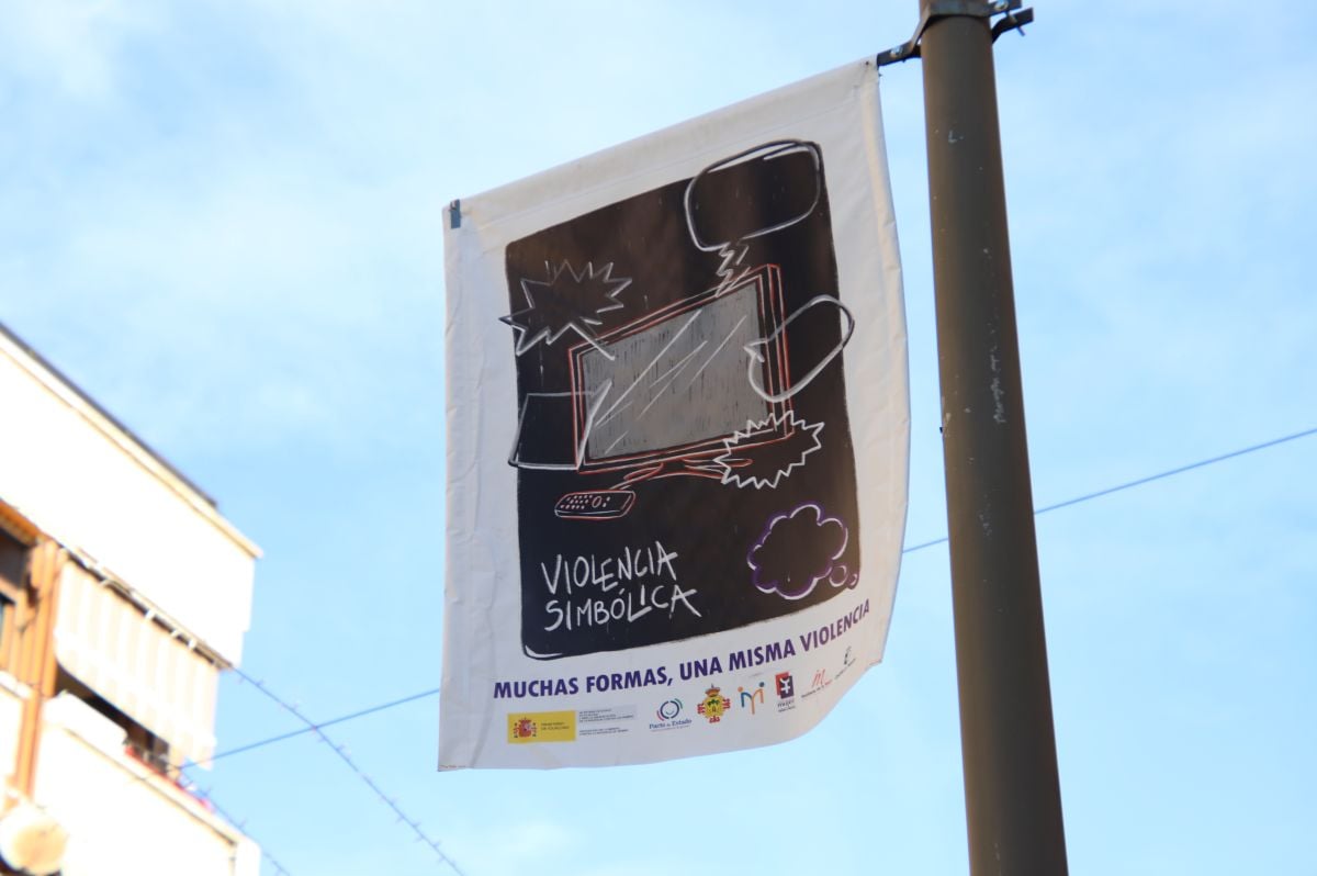 La programación de actividades organizadas por el Área de Políticas de Igualdad se ha presentado en la calle Toledo, cuyo tramo entre la plazuela de los Paradores y la carretera de La Solana luce desde hace unos días banderolas con la campaña titulada ‘Muchas formas, una misma violencia’, que reproducen los diseños creados por la joven artista manzanareña, Celia Mascaraque, sobre los diferentes tipos de violencia machista: física, psicológica, sexual, económica, simbólica, vicaria, institucional, digital, explotación sexual y mutilación genital femenina. Para la concejala, se trata de “un excelente trabajo artístico que evoca las distintas formas que la violencia machista puede tomar”.