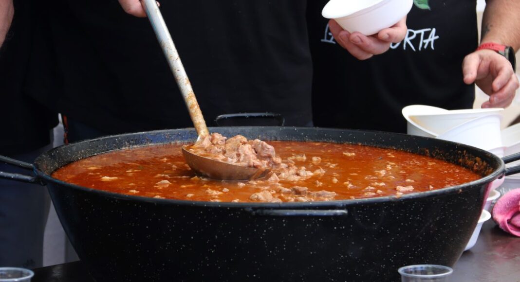 Aunque hubo que hacer frente a las altas temperaturas del domingo, todo el mundo aguardó pacientemente su turno para recoger su comida y su bebida. Una espera que estuvo amenizada por la música de la charanga Stacazzo y que mereció la pena porque la caldereta, tal como reflejaron las caras de felicidad y los platos vacíos que enseguida se vieron en los corrillos de gente, estuvo deliciosa.