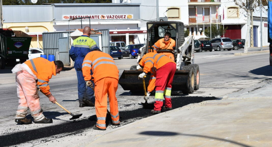Las obras consisten en la habilitación de una solera de cemento con pavimento por encima y un dibujo realizado con gravilla de colores que en una de las rotondas va a ser un racimo de uvas y en la otra, dos medialunas.