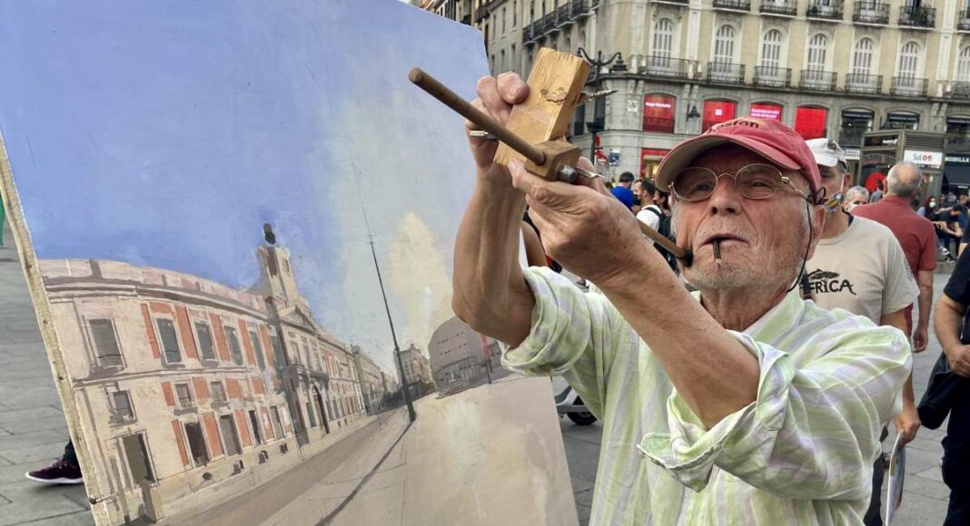 Madrileños y turistas se han acercado este jueves a la Puerta del Sol para ver pintar a Antonio López, definiéndole como «el nuevo Diego Velázquez», y algunos han asegurado que verle trabajar es «un gusto para los sentidos».