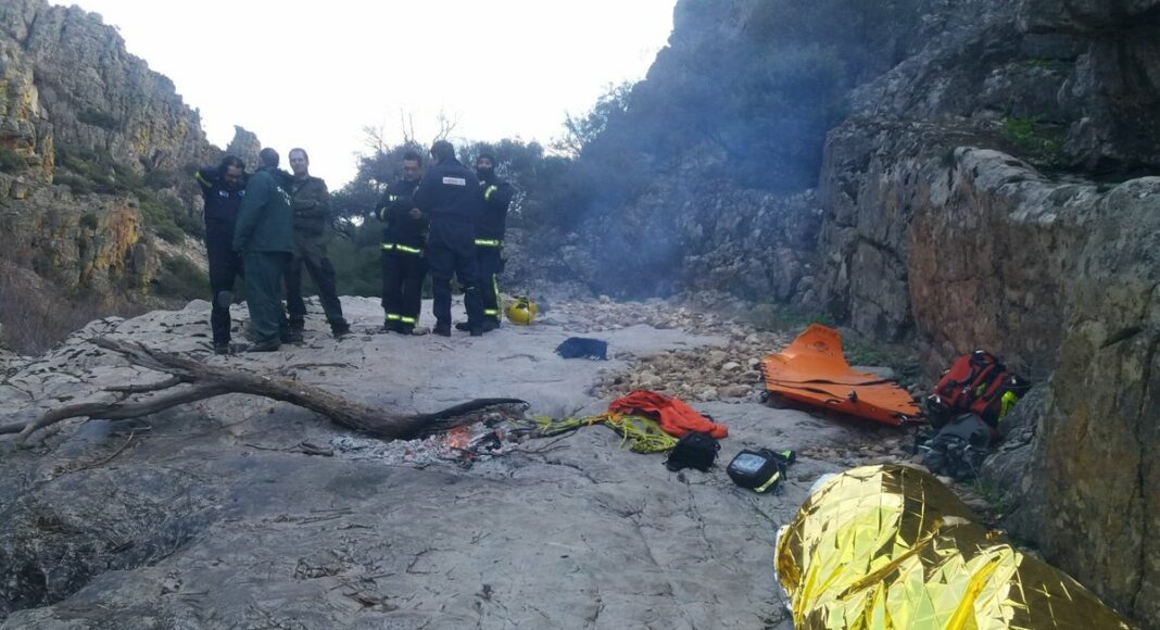El equipo de rescate que ha permanecido junto al ciclista durante toda la noche: agentes medioambientales, médicos, técnicos sanitarios y Guardia Civil acompañandolo y esperando a la llegada del día para proceder a la extracción. Las temperaturas han respetado y encendieron un fuego para poder calentarse como puede verse en el video que han publicado los Agentes Medioambientales en su cuenta de Twitter: