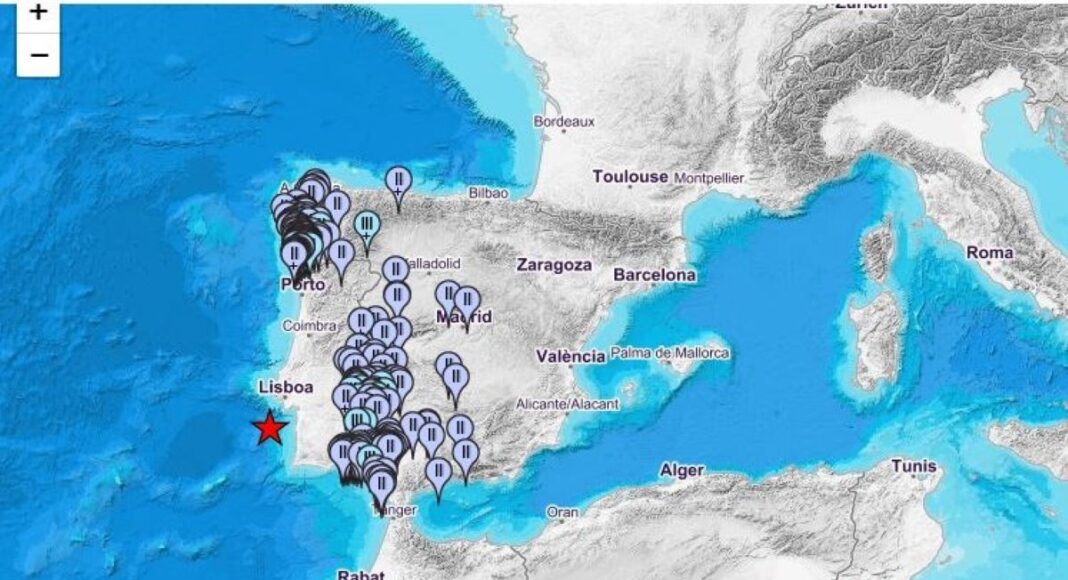 Siete comunidades autónomas del oeste peninsular han sentido el terremoto de magnitud 5,5 registrado esta madrugada en el Atlántico, al sur de la capital de Portugal, Lisboa, según informa el Instituto Geográfico Nacional (IGN) en su página web. En Castilla-La Mancha, Ciudad Real y Puertollano han llegado a sentir el temblor en grado II.