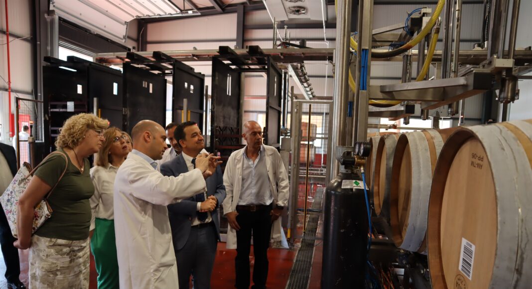 Acompañado por el presidente de Félix Solís Avantis, Félix Solís, así como del director de compras, Carlos Nieto, y de la directora general de Alimentación, Elena Escobar; la delegada de la Junta en la provincia, Carmen Olmedo y la delegada de Agricultura en Ciudad Real, Amparo Bremard, entre otros, Martínez Arroyo ha recorrido las instalaciones de una infraestructura, a punto de concluirse y que ha contado con el apoyo del Gobierno regional con una ayuda inversora de cerca de 3 millones de euros dentro del último VINATI, lo que significa el 20 por ciento de financiación de la obra del almacén y todas las barricas que suponen incremento productivo para la empresa.