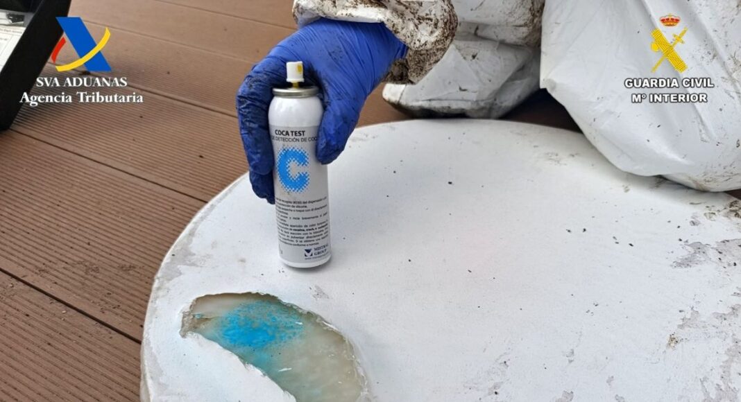 La sustancia encontrada en la base de los bidones se correspondía con placas o discos circulares de silicona impregnados con la cocaína. Estos elementos estaban envueltos en plástico pintado de color blanco que imitaban el tono del interior de los bidones con el objetivo de simular su fondo original.