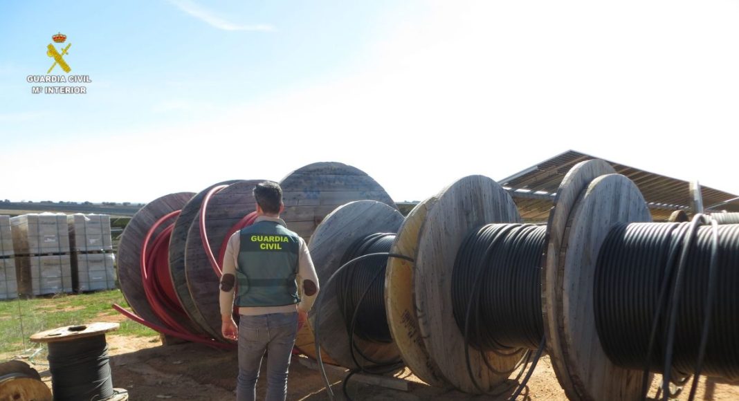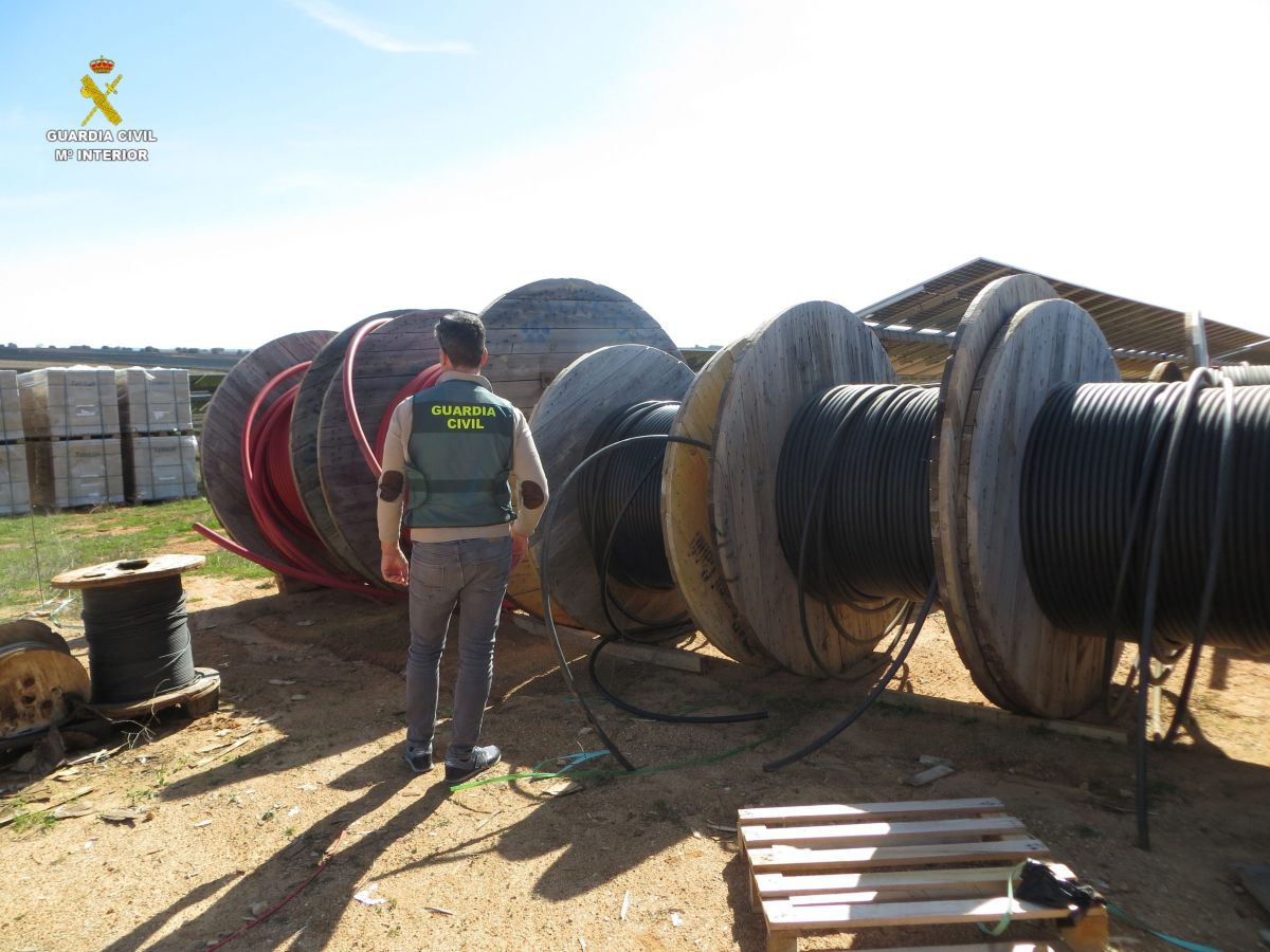 La Guardia Civil de Cuenca ha investigado a cinco hombres, de entre 29 y 51 años, como presuntos autores de cuatro delitos de robo con fuerza tras sustraer bobinas de cable de cobre en instalaciones fotovoltaicas de la comarca de la Manchuela conquense. El valor total del material robado asciende a 44.000 euros.