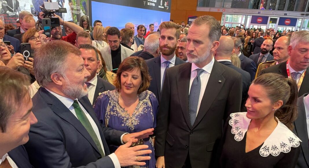 El alcalde de Cuenca, Darío Dolz, ha aprovechado la visita de los Reyes de España al estand de Castilla-La Mancha en Fitur para invitarles, junto al concejal de Turismo, Miguel Ángel Valero, a visitar la ciudad con motivo de su designación como Capital Española de la Gastronomía.