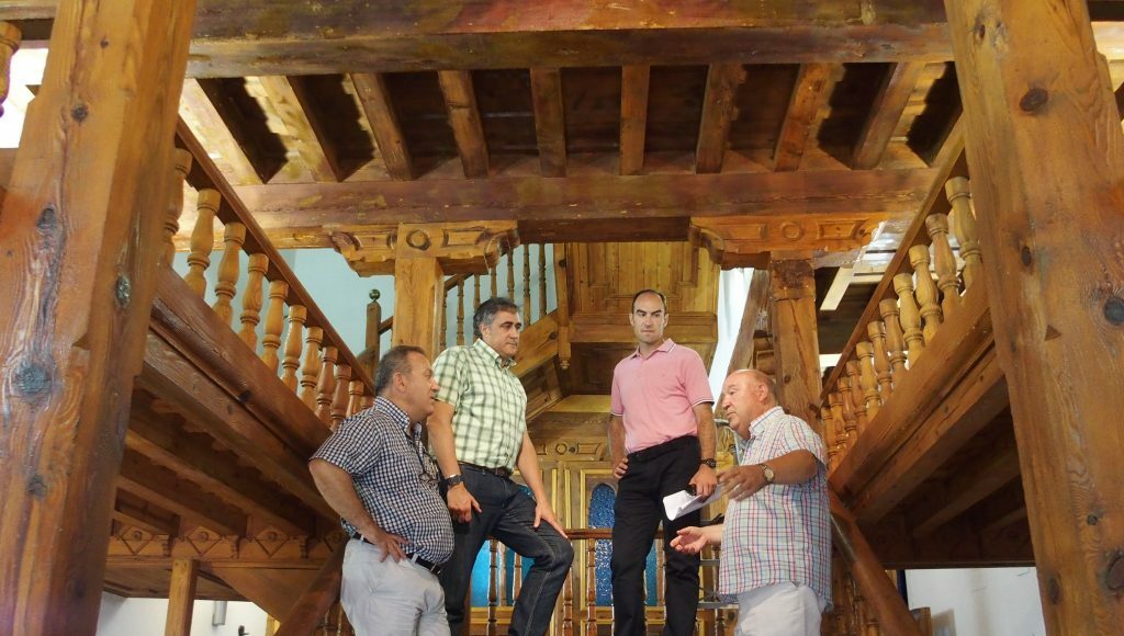 El alcalde de Cuenca, Ángel Mariscal, acompañado por el Gerente del Consorcio ‘Ciudad de Cuenca’, Daniel León, y el arquitecto técnico del Consorcio, Ricardo Alonso, ha visitado el centro para seguir de cerca la evolución de las obras. La actuación principal ha consistido en el tratamiento antixilófago de la madera del zaguán y las escaleras del centro a base de imprimación de gel de absorción profunda por pulverización y brocheado. Se ha utilizado para este fin productos cuyo activo principal es la permetrina, base de insecticidas y acaricidas.