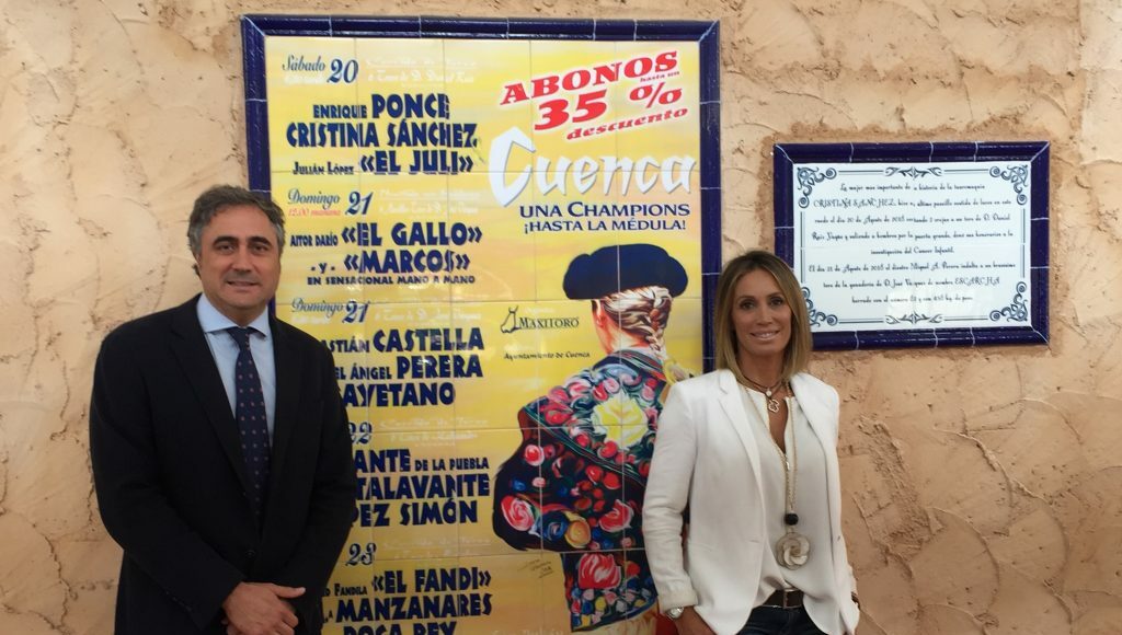 Por su parte, Ángel Mariscal destacó la importancia de la feria taurina de Cuenca y la fiesta de los toros en general, por su valor económico, cultural, histórico y tradicional. Asimismo, quiso agradecer a Cristina Sánchez el gesto de reaparecer en Cuenca por un solo día y por una causa tan noble, algo por lo que “la ciudad le estará agradecida siempre”. Por otro lado, puso en valor el coso conquense, y es que “Maximino está convirtiendo en un auténtico museo la plaza de toros, colocando azulejos con los carteles de las feria taurinas de Cuenca”. Para conformar todas ellas han contribuido, concluyó, “las grandes figuras que siempre se han anunciado, como es el caso de Cristina Sánchez”.