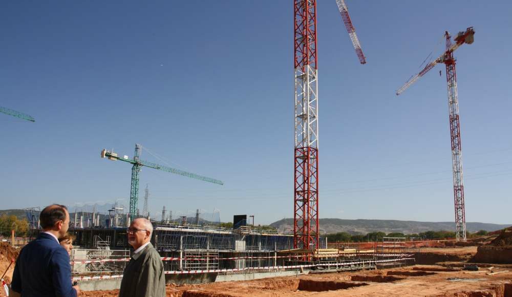 Según ha indicado en esas fechas ya se trabajaba para sanear la parcela y realizar trabajos para el soterramiento de la línea de alta tensión, pero ha sido a partir del levantamiento de la suspensión de las obras cuando la actividad constructiva se ha revitalizado, con la colocación de las grúas y la ejecución de varios tramos de forjado y pilares.