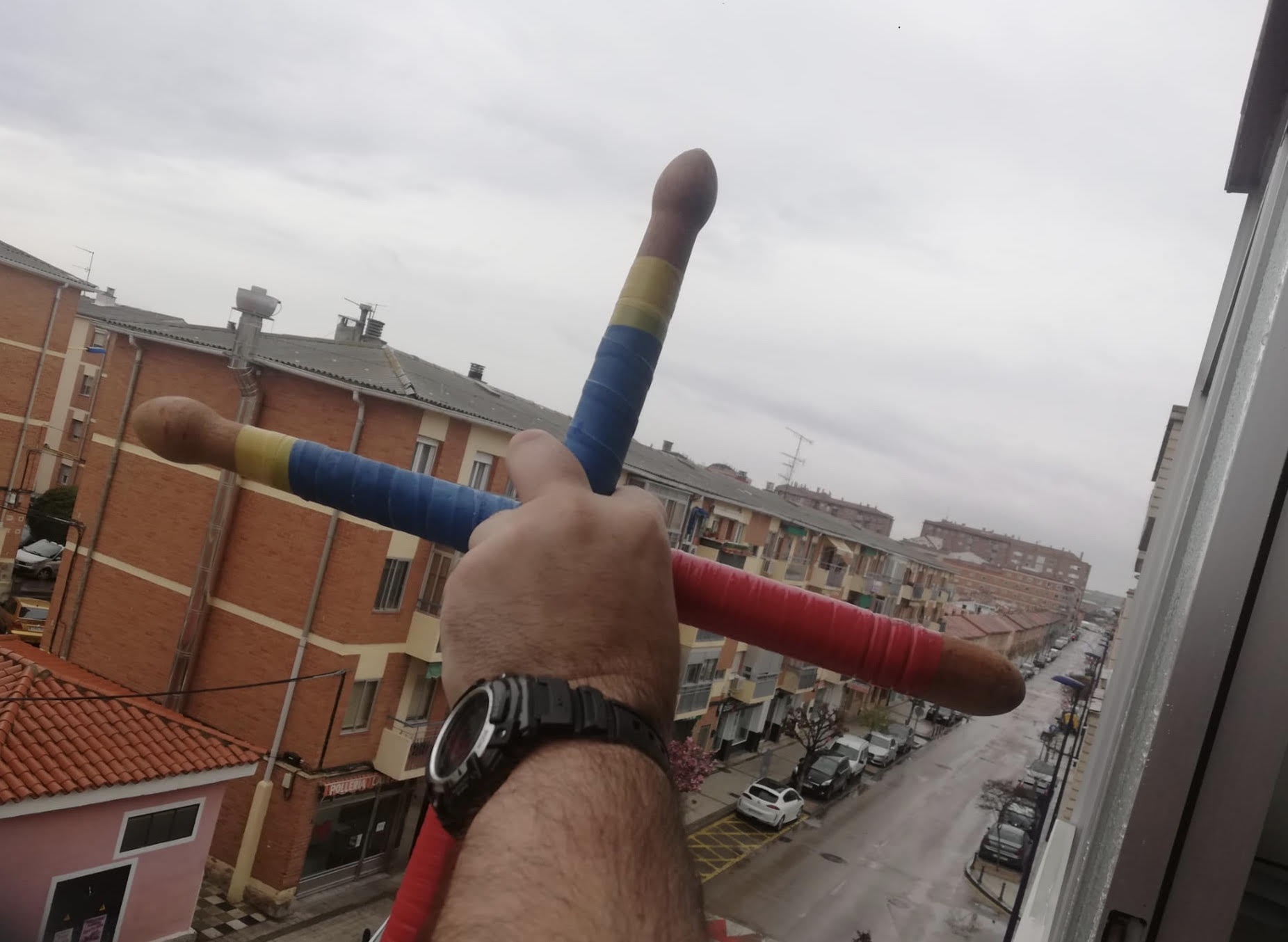 Ni la lluvia ni el confinamiento decretado por el estado de alarma ante el avance del coronavirus han callado este Viernes Santo a centenares de tambores que han acudido a la llamada de la Junta Regidora de las Turbas para inundar los balcones de Cuenca con el característico repiqueteo propio de la procesión Camino del Calvario.
