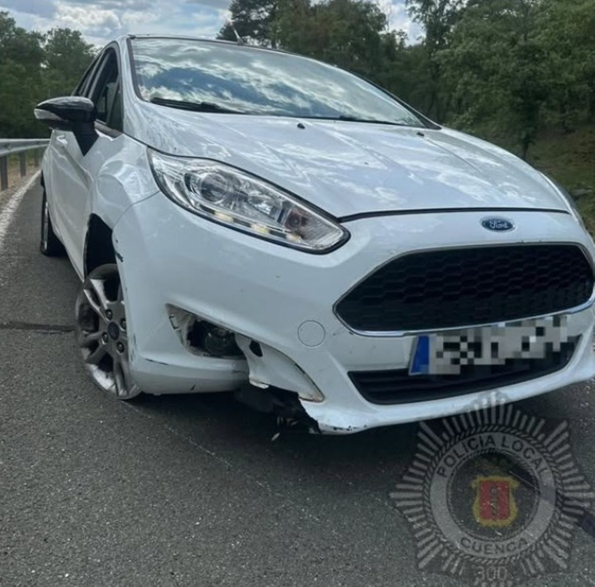 El vehículo se dio a la fuga del lugar del accidente, siendo interceptado por la patrulla en las inmediaciones de la pedanía de Valdecabras, cuando circulaba en llanta por la carretera.