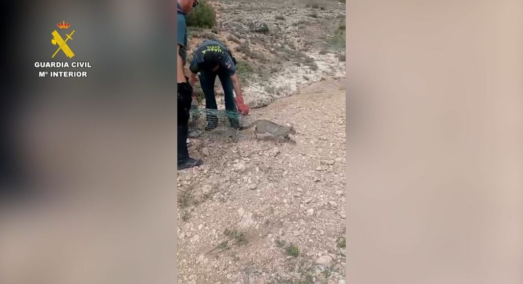 Agentes de la Guardia Civil de San Clemente y La Almarcha han participado en el rescate de un ejemplar de gato montés que se encontraba apresado en el interior de una jaula, en el término municipal de Pinarejo.